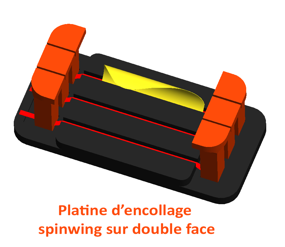 L’outil d’encollage du ruban double face sur les Spinwings fonctionne très bien.